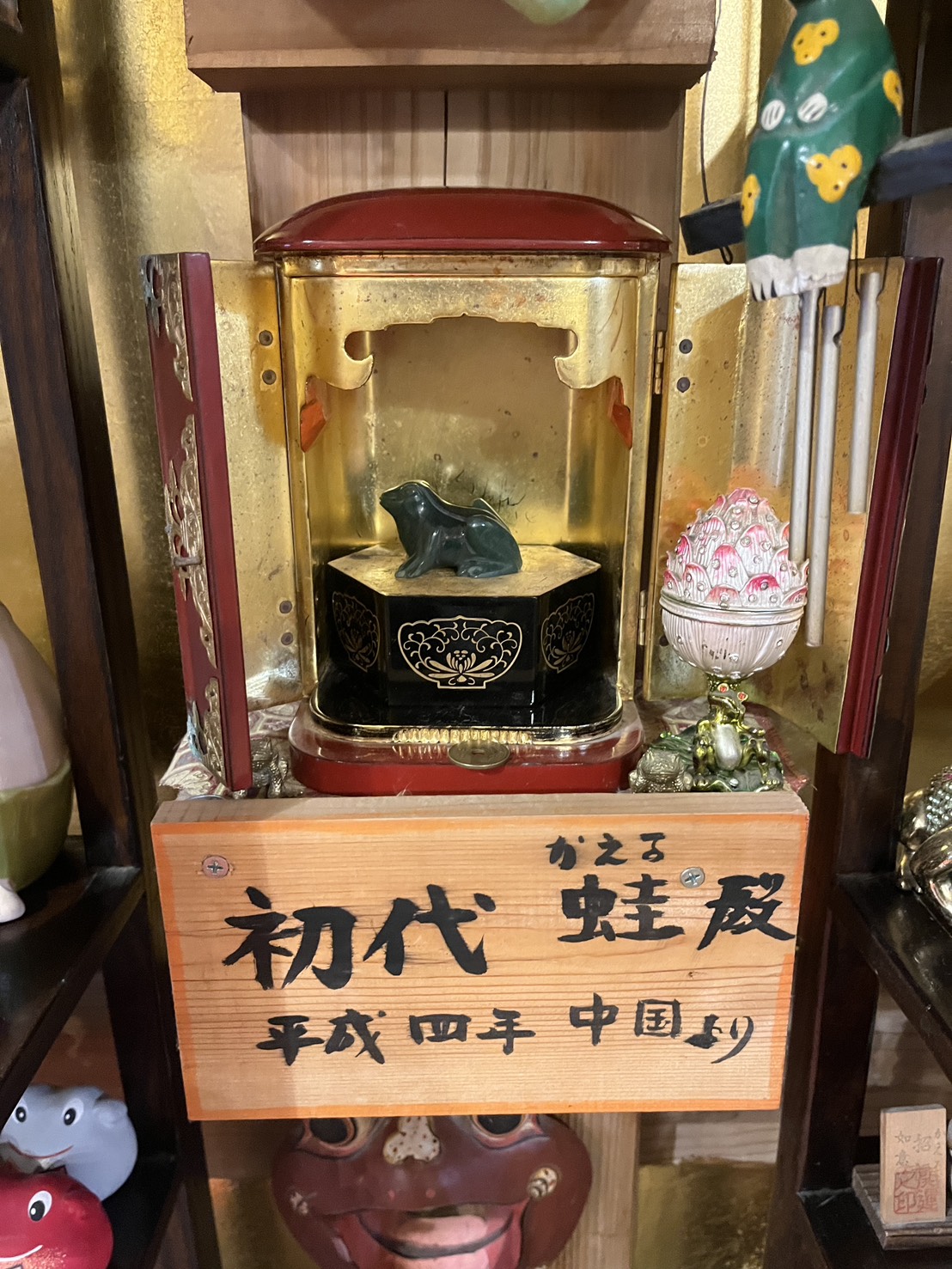 住職が中国旅行に行った際、翡翠でできたカエルの置物を買って帰ってきたのが始まりで、